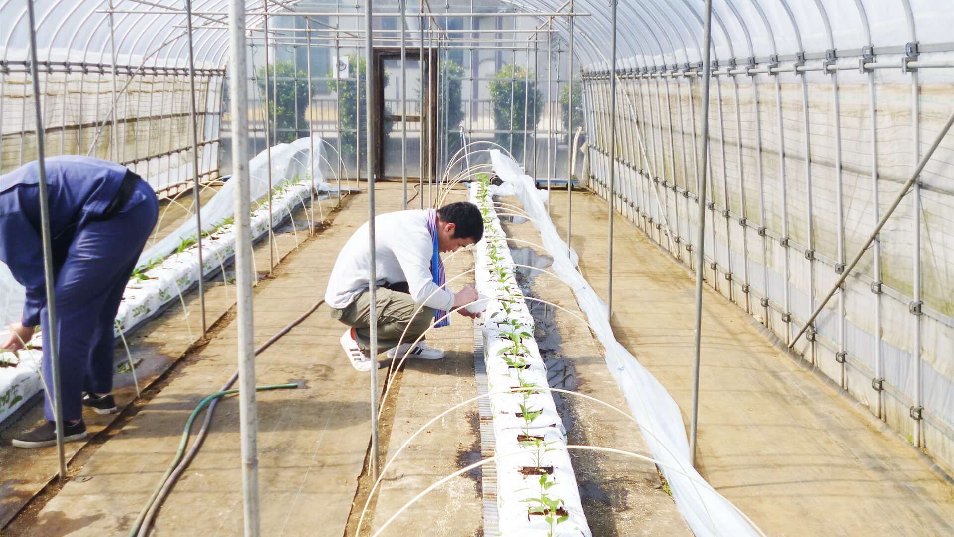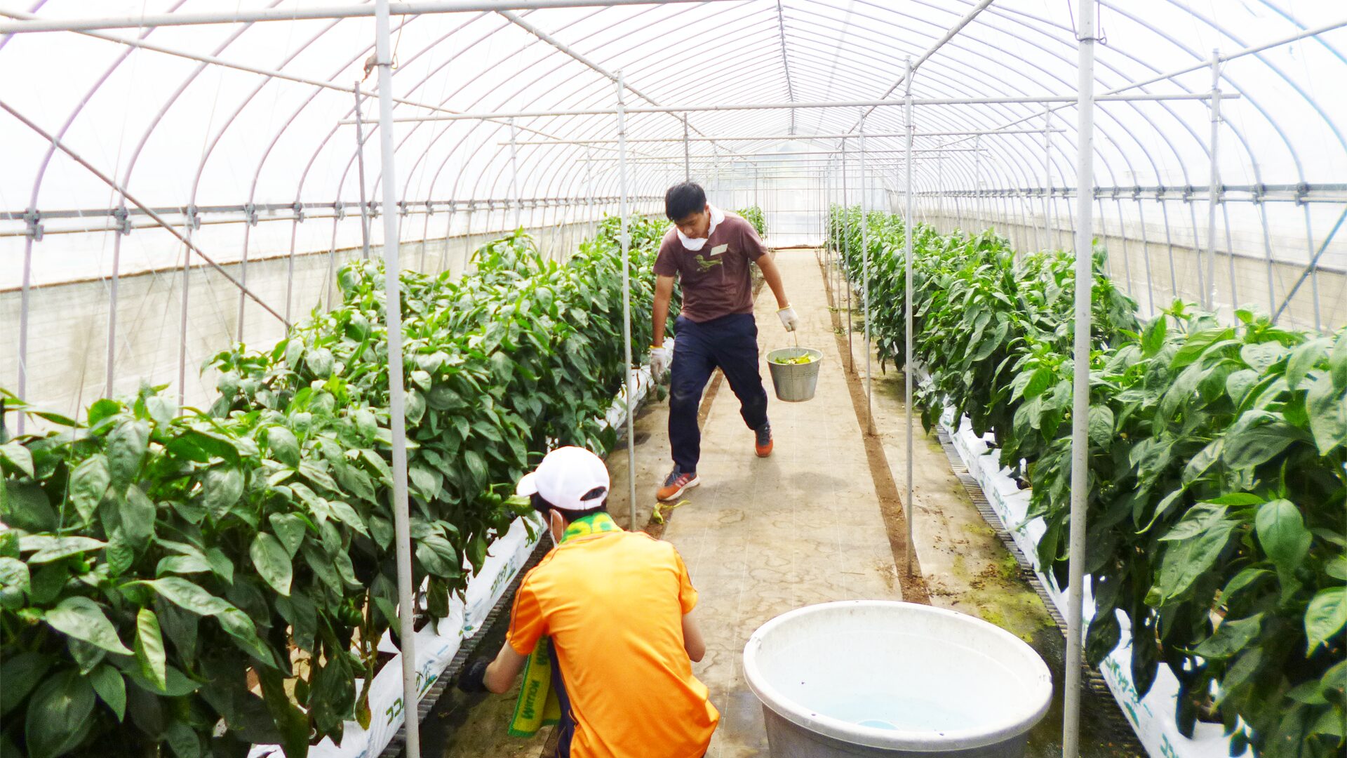 低農薬栽培、ココナッツ培地を利用した養液栽培です。